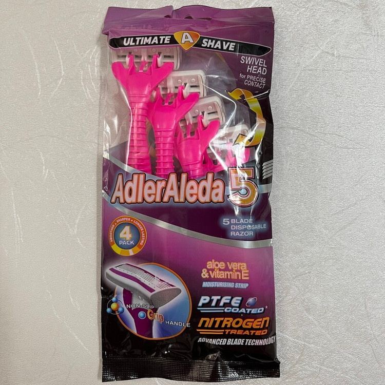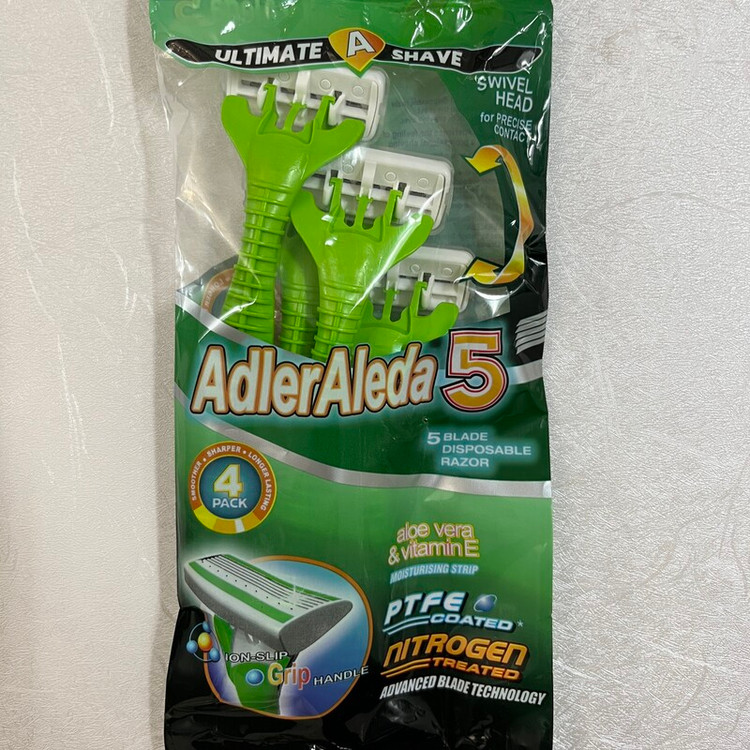 ویژگی های تیغ اصلاح 5 لبه 4 تایی Adler Aleda دارای سری انعطاف پذیر بسته بندی 4 عددی قابلیت استفاده برای چندین بار سری منعطف جهت اصلاحی کامل تیغه های تیز، استیل و ضد زنگ هر کدام دارای 5 لبه تیغ در دو رنگ سبز و صورتی مناسب برای هر پوست جذب بهتر محصولات مراقبت از پوست دارای 5 تیغ جنس تیغ استیل ضد زنگ مناسب برای آقایان دارای سری انعطاف پذیر دارای سرپوش روی سرخودتراش خوش دست و مناسب برای اصلاح هرنوع انحنای بدن حاوی ویتامین E وآلوئه ورا